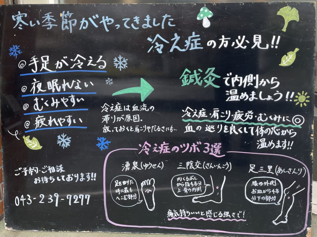 先日、ブラックボードを更新しました!冷え性でお困りの方必見です!